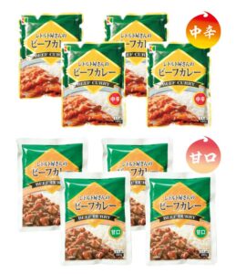 中辛と甘口のカレーを各4Pのセットにしました。小さなお子様から大人まで楽しんでいただける商品です。