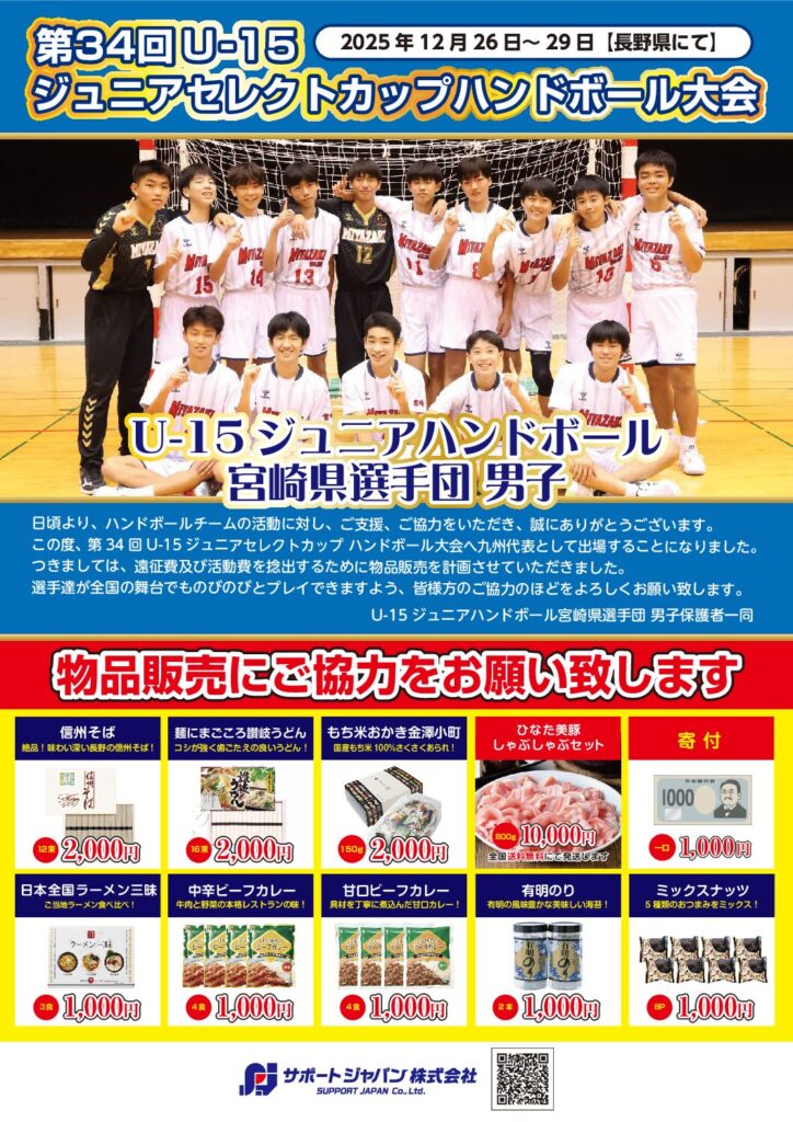 U-15ジュニアハンドボール宮崎県選手団男子様