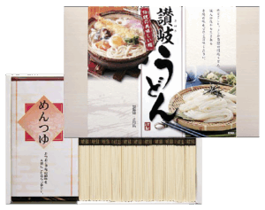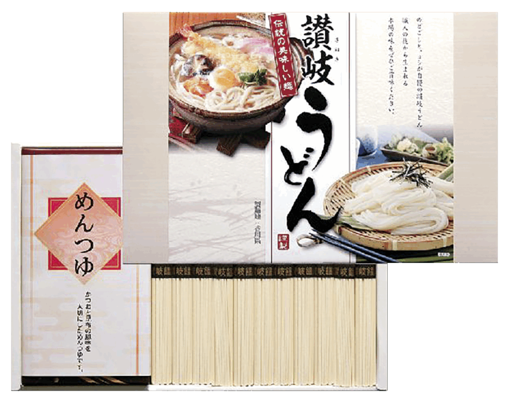 コシが強く、歯切れも良い讃岐うどんと醤油のコクと旨みを生かし、かつおと昆布の風味を大切にしたバランスの良いつゆのセットです。